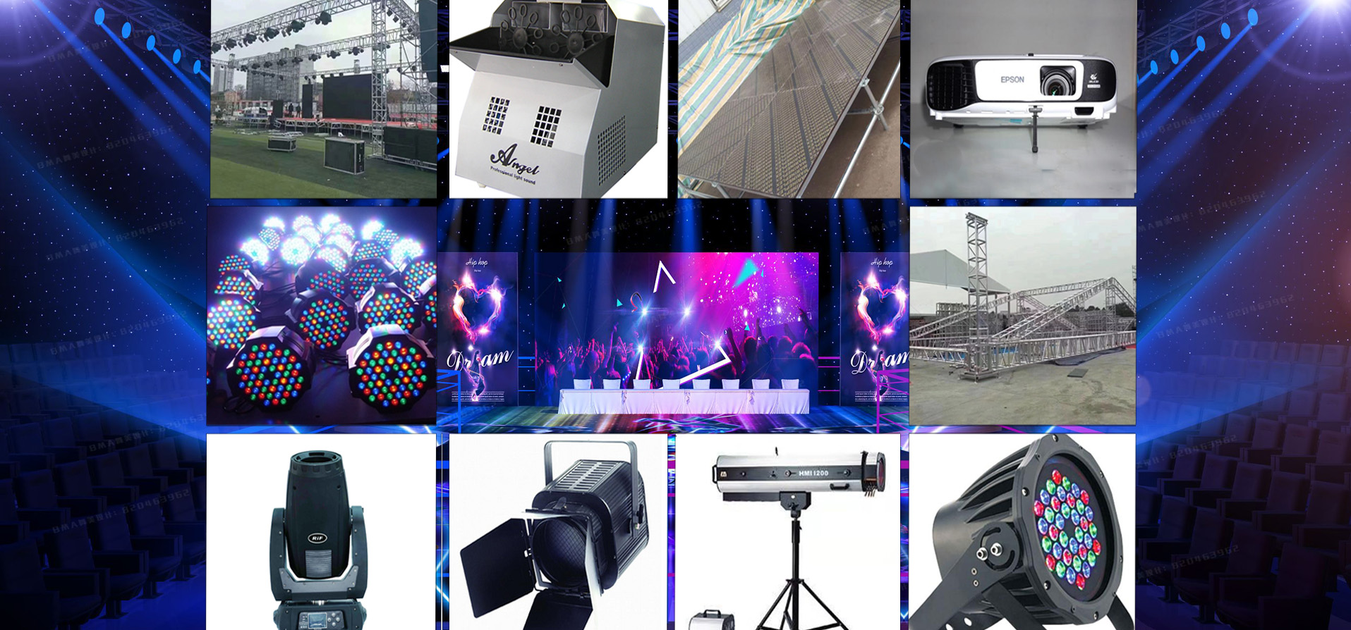 提供全程策劃執(zhí)行及燈光、音響、舞臺、背景、座椅、攝影攝像器材、氣球、拱門等設備租賃